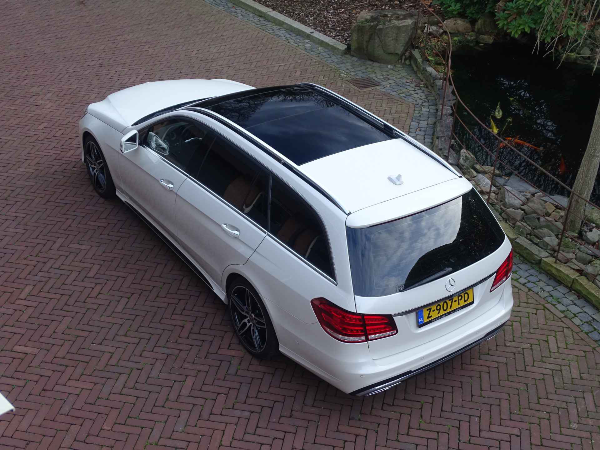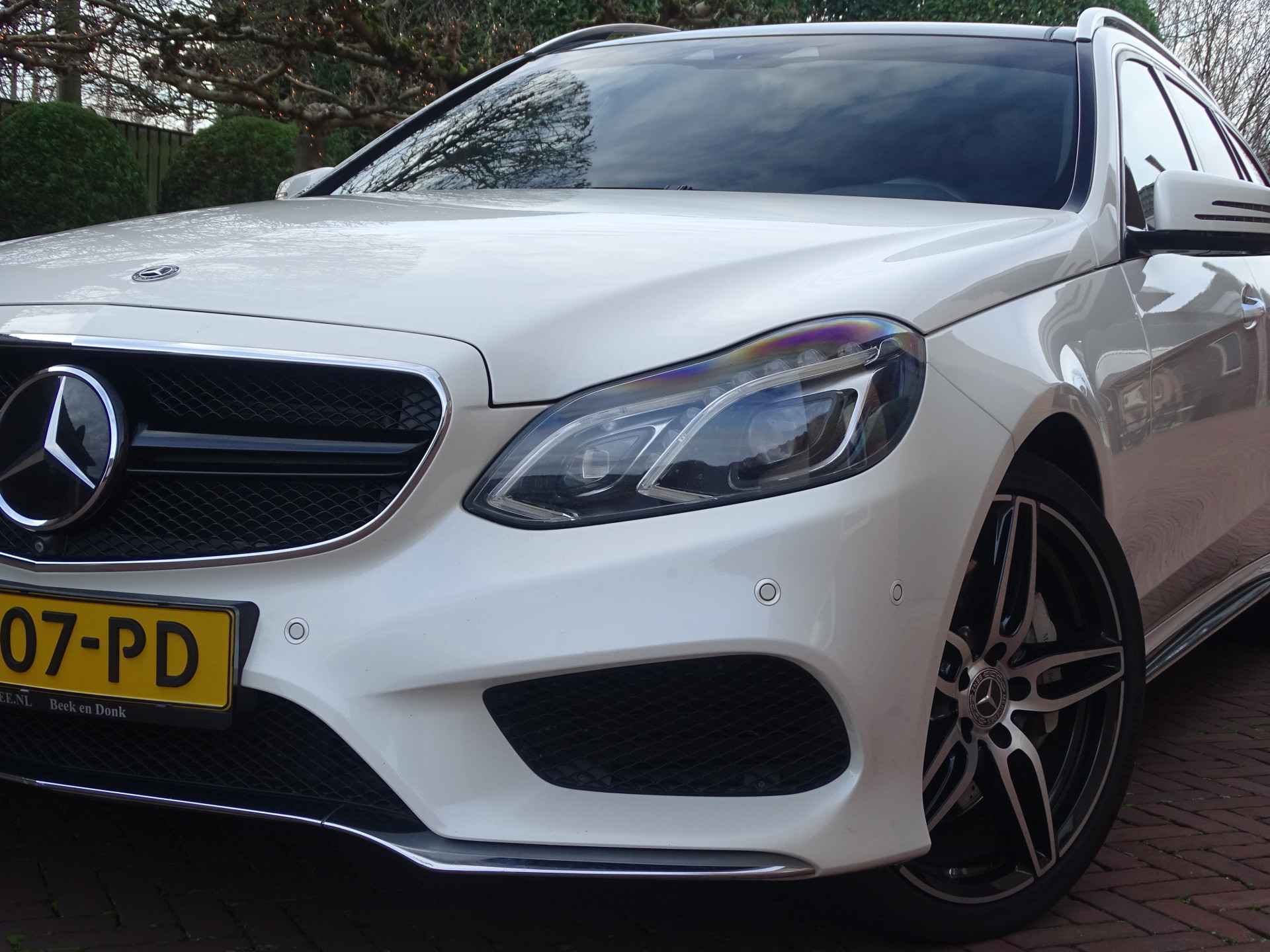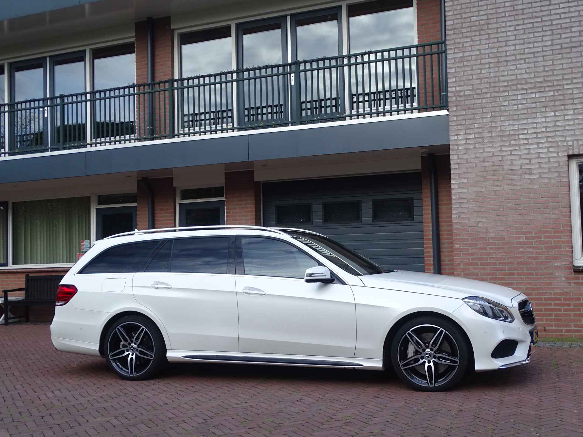 Uniek Mercedes E500 V8 AMG Edition Sport Station van de 2de eigenaar in de Schitterende kleur Diamant wit metallic met Bang & Olufsen muziek installatie, en het betreft hier een NIET-rokers auto.